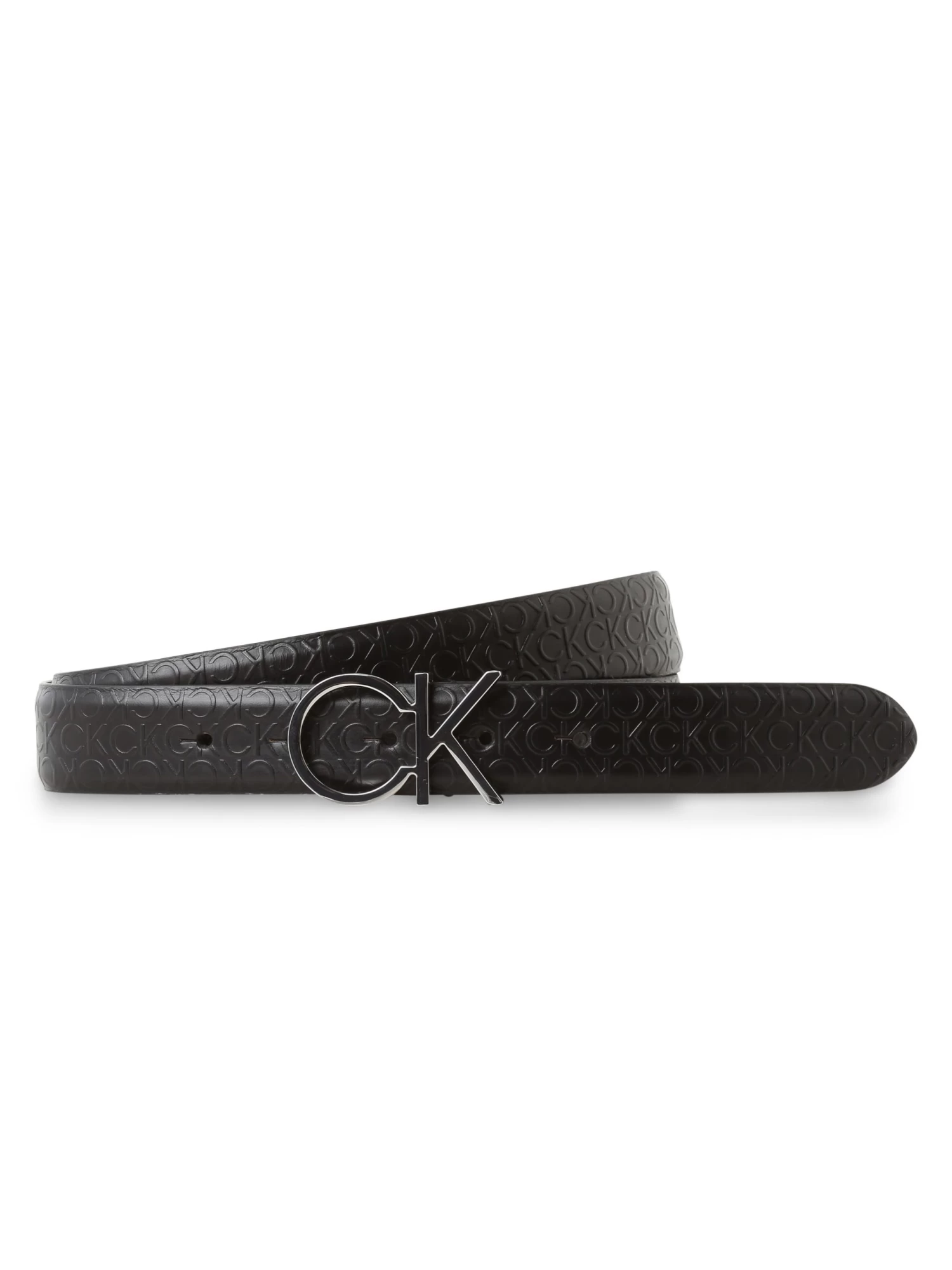 Die Monogramm-Prägung verleiht dem Ledergürtel von Calvin Klein Trend-Charakter.