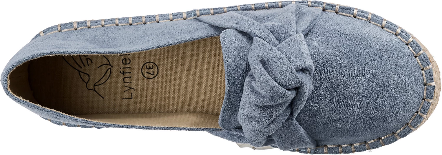 Die Espadrilles von Lynfield sorgen stets für einen schicken Auftritt. Das Modell kommt ohne jeglichen Verschluss aus, sodass schnell und einfach hineingeschlüpft werden kann. Aufgrund der äußerst guten Anpassungsfähigkeit des textilen Canvas-Futters überzeugt das Paar mit einem sehr angenehmen Tragekomfort. Das textile Obermaterial unterstreicht die Aufmachung der Schuhe.