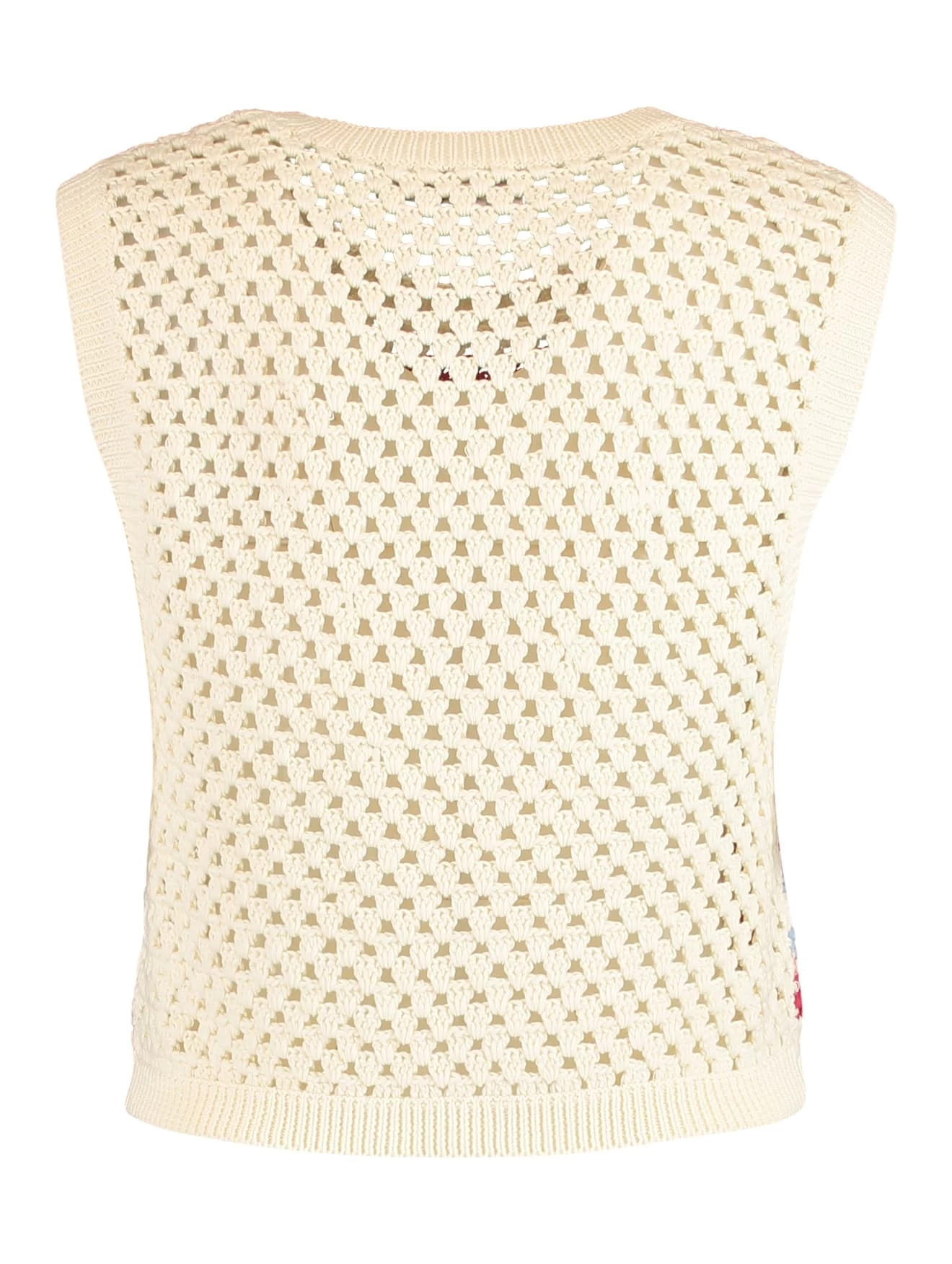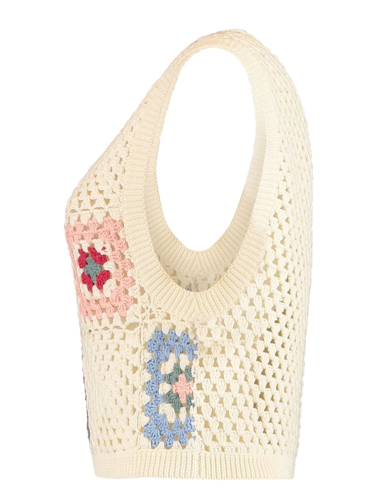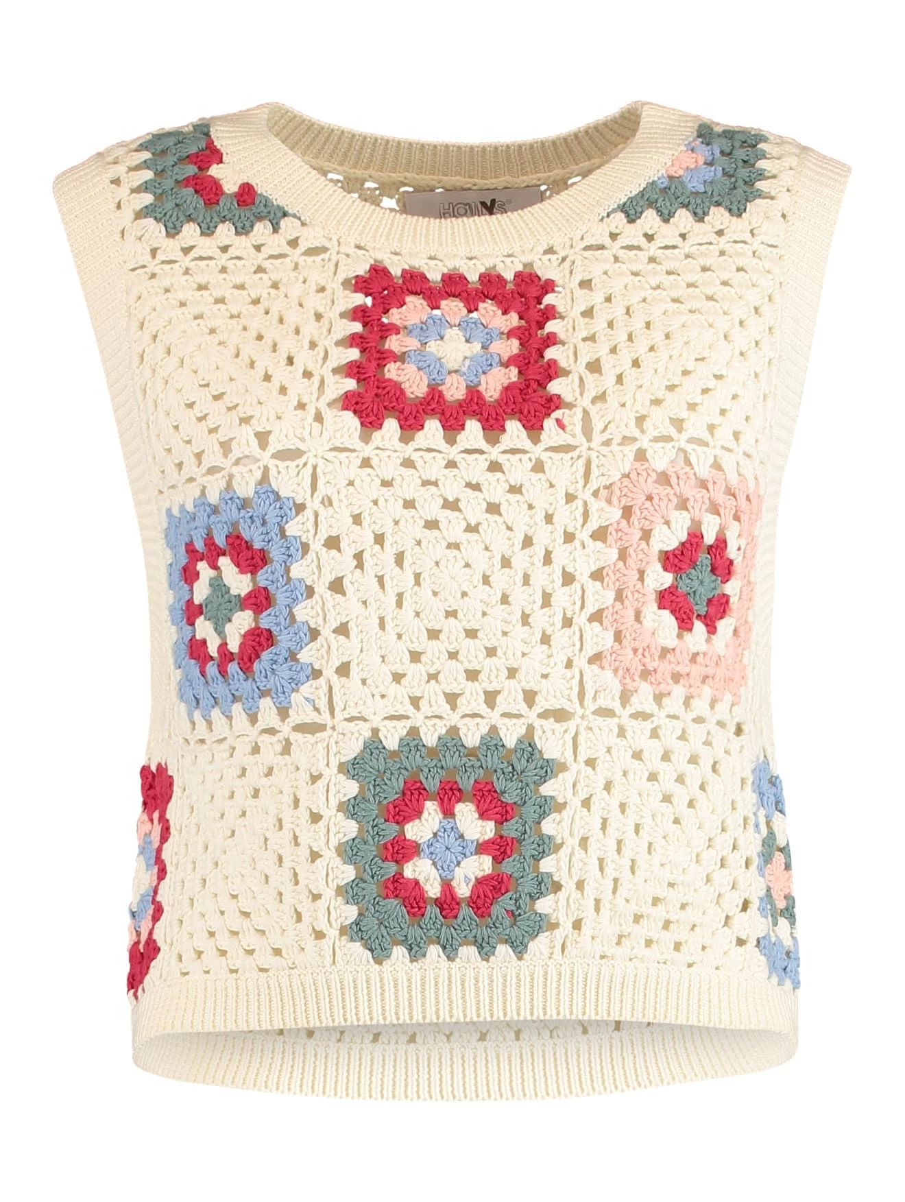 Sommerlicher Pullunder mit bunten Häkeldetails.