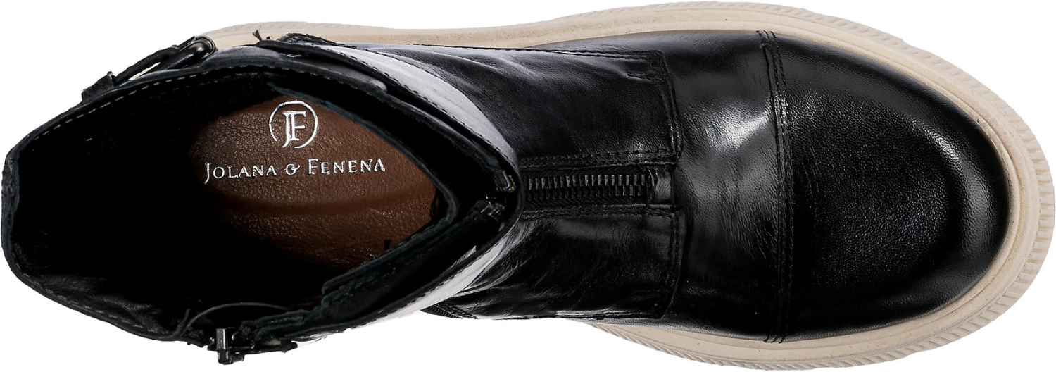 Die Stiefeletten von JOLANA & FENENA sorgen stets für einen trendigen Style. Ein stilsicherer Auftritt gepaart mit angenehmem Komfort gelingt dank des mittelhohen Blockabsatzes. Feinstes Schafsleder zeichnet dieses Paar aus. Das Modell ist mit einem wärmenden Futter versehen. Der Schnürverschluss verspricht eine individuelle Anpassung an den Fuß und wird außerdem durch einen praktischen Reißverschluss ergänzt.