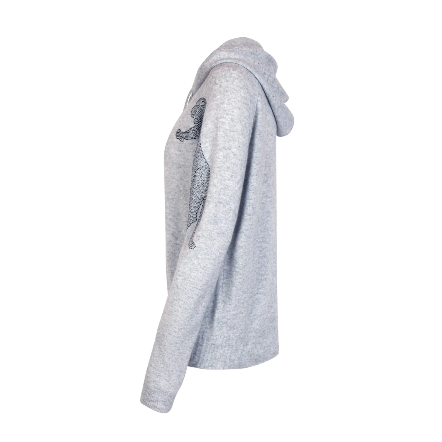 Jacke mit Kapuze + Raglan Steinchenmotiv am Arm.