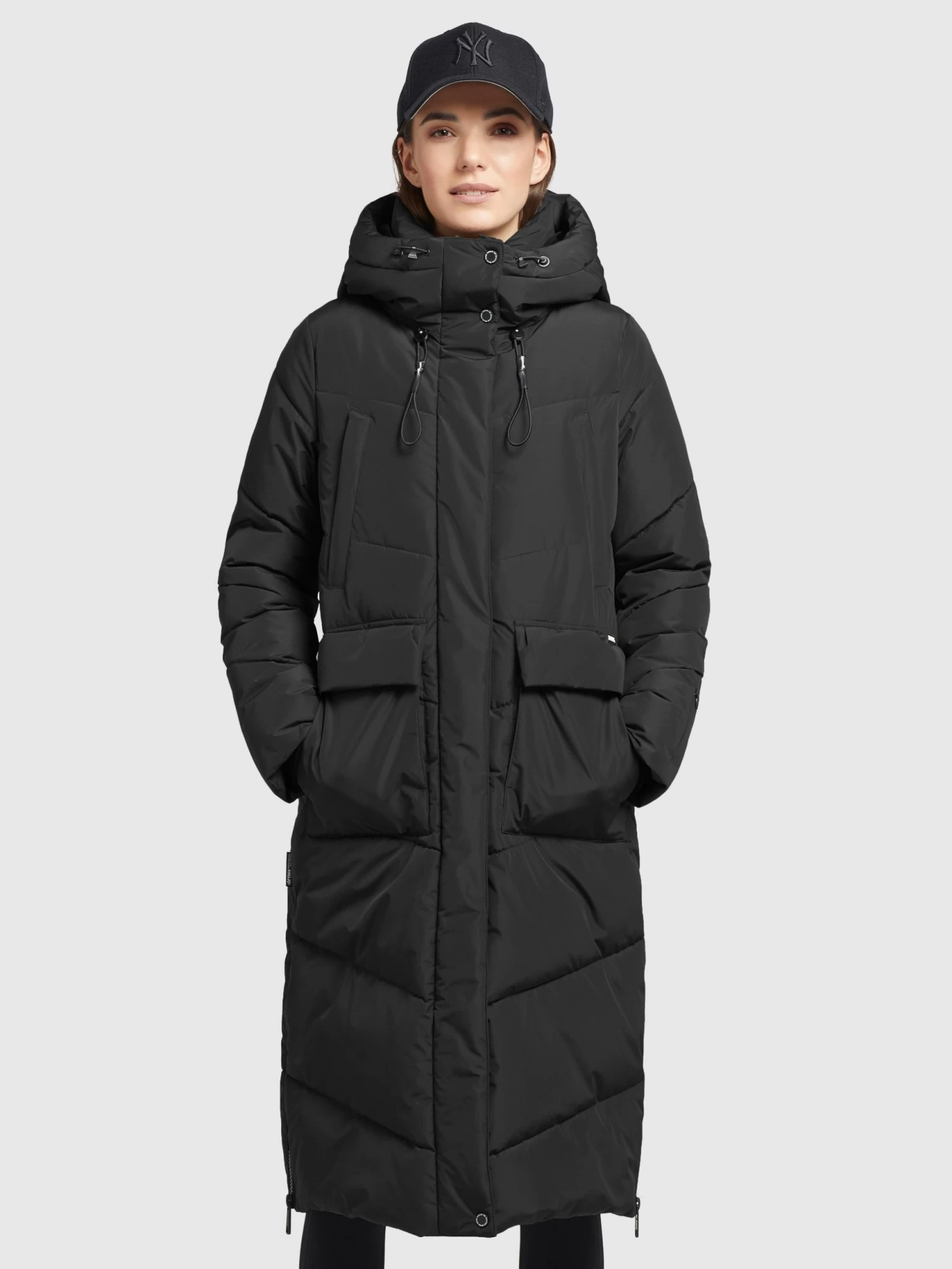 Mit innenliegendem Stehkragen und einer hoch schließenden Kapuze begleitet Dich der warm wattierte khujo Mantel ELVITA durch die kalte Jahreszeit. Die im Loose Fit geschnittene und gesteppte Winterjacke begeistert zudem mit einem Reißverschluss in Kombination mit einer Druckknopfleiste, Eingriff-, Patten- und Reißverschlusstaschen sowie Taschenbeutel mit Fleece und elastische Rippbündchen am Ärmelfutter. Für Deine individuelle Bewegungsfreiheit gibt es seitliche Gehschlitze mit Reißverschlüssen.