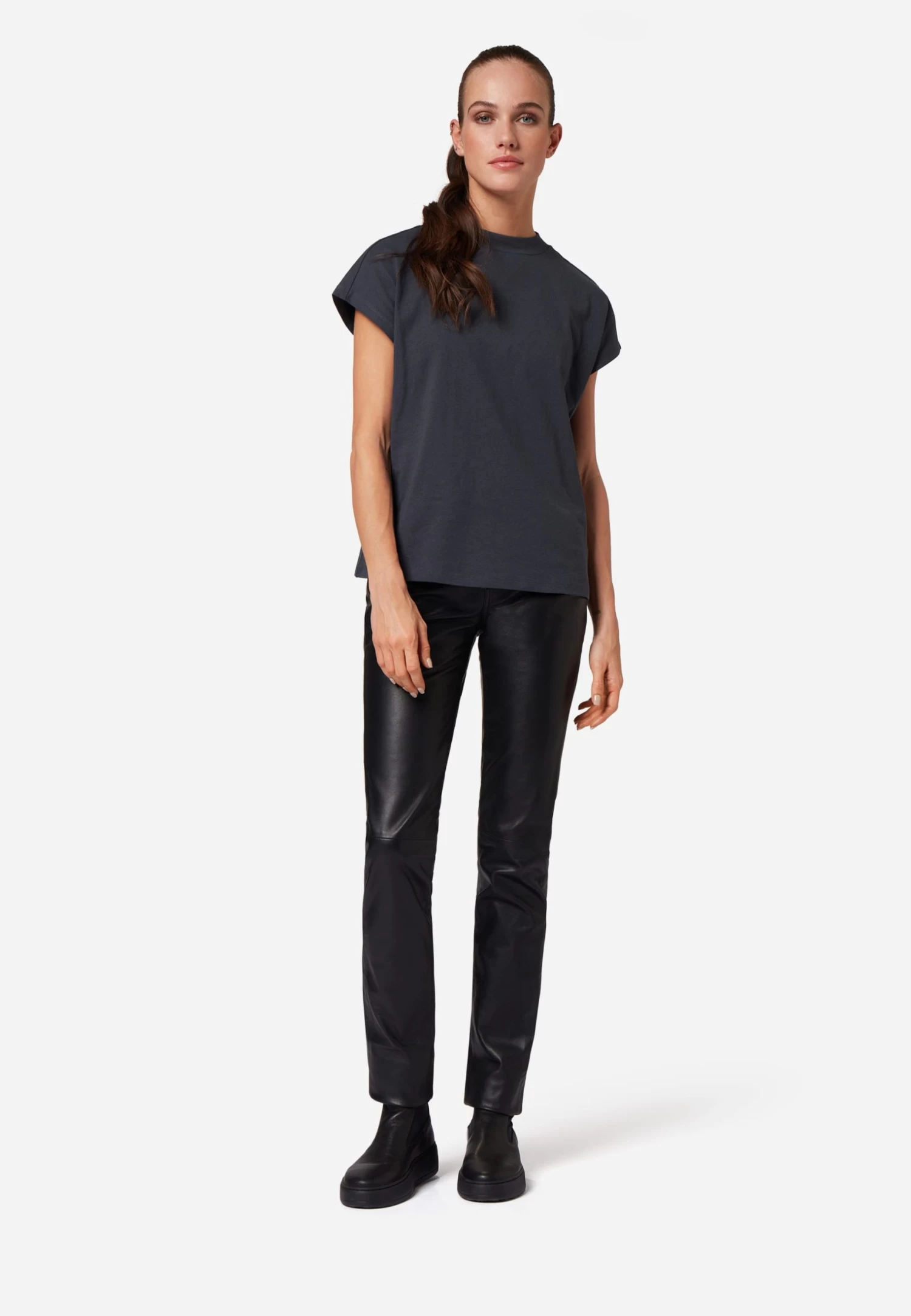 Lederhose Triston-B in Schwarz für Damen von Ricano® aus Lamm-Nappa Leder – 5-Pocket-Stil – Regular Waist / Medium Rise – Zeitlos und wieder moderner Bootleg Cut – Futter: 100% atmungsaktives Polysatin – Ganzjahresartikel – von Frühling bis Winter zu jeder Jahreszeit passend – Größenausfall: Artikel fällt eine Nummer kleiner aus – Bitte eine Nummer größer wählen als gewohnt – Italienisches Fitting. Enthält nichttextile Bestandteile tierischen Ursprungs.
