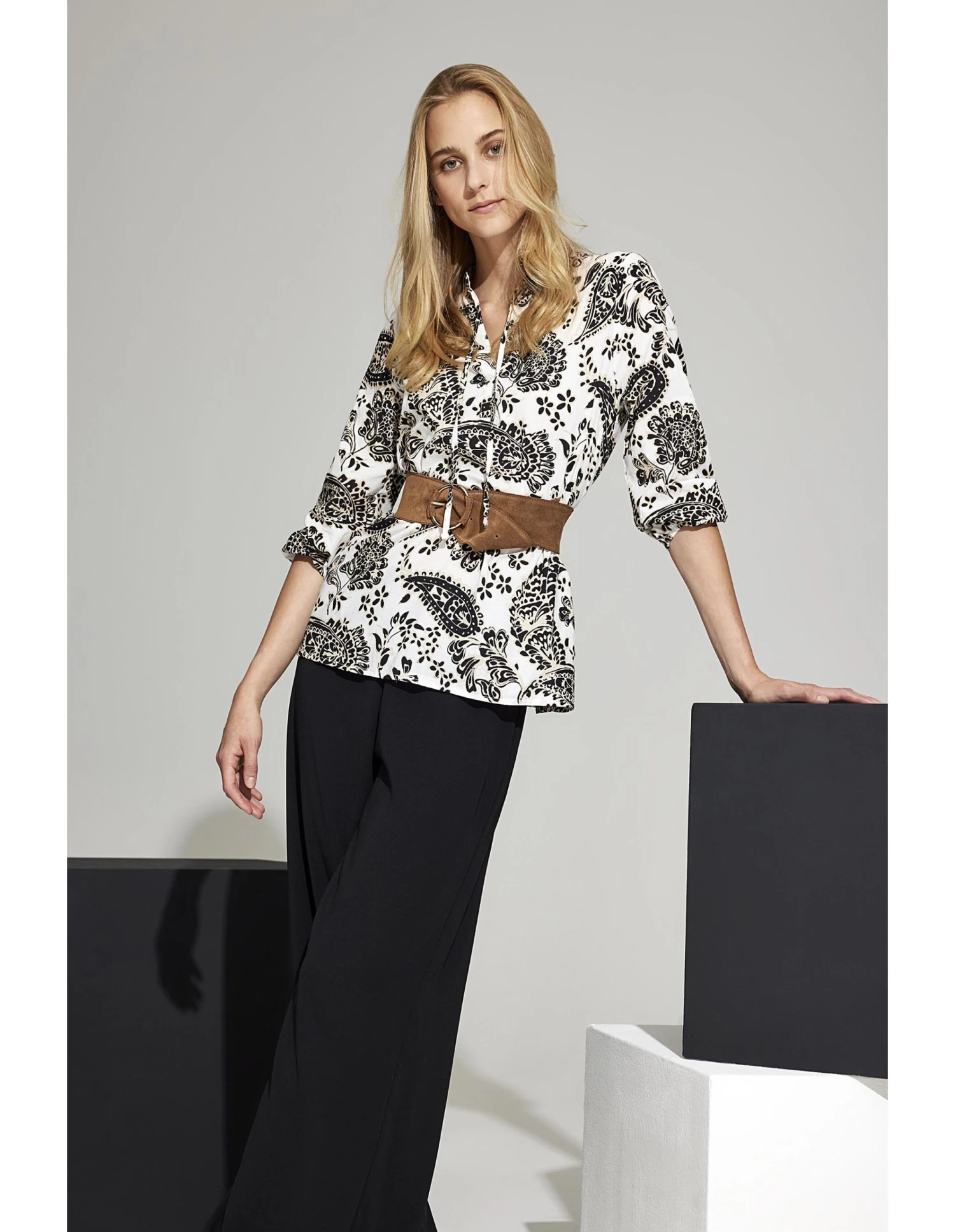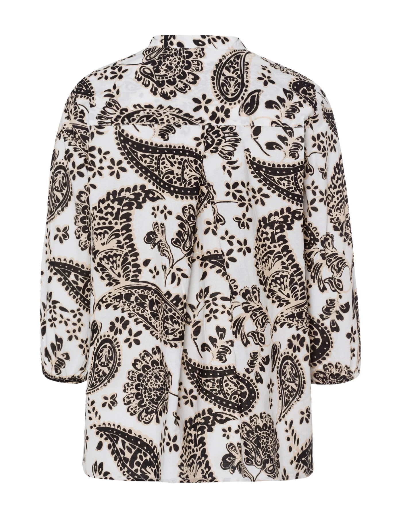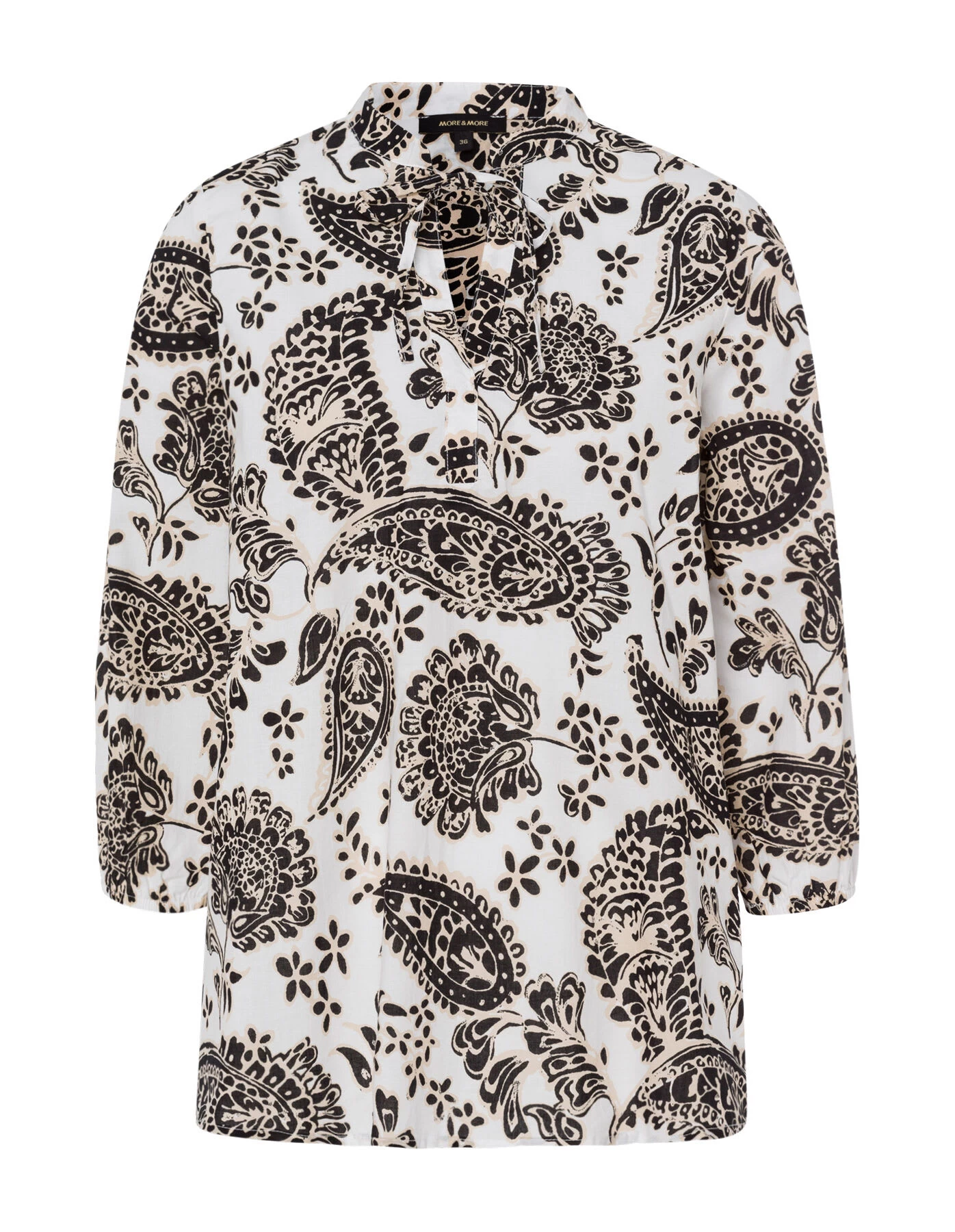 Sommerlich leichte Tunikabluse von MORE & MORE mit schwarz/weißem Paisleyprint.