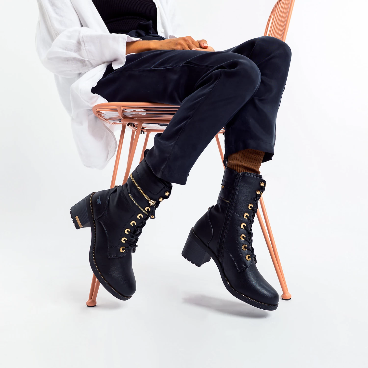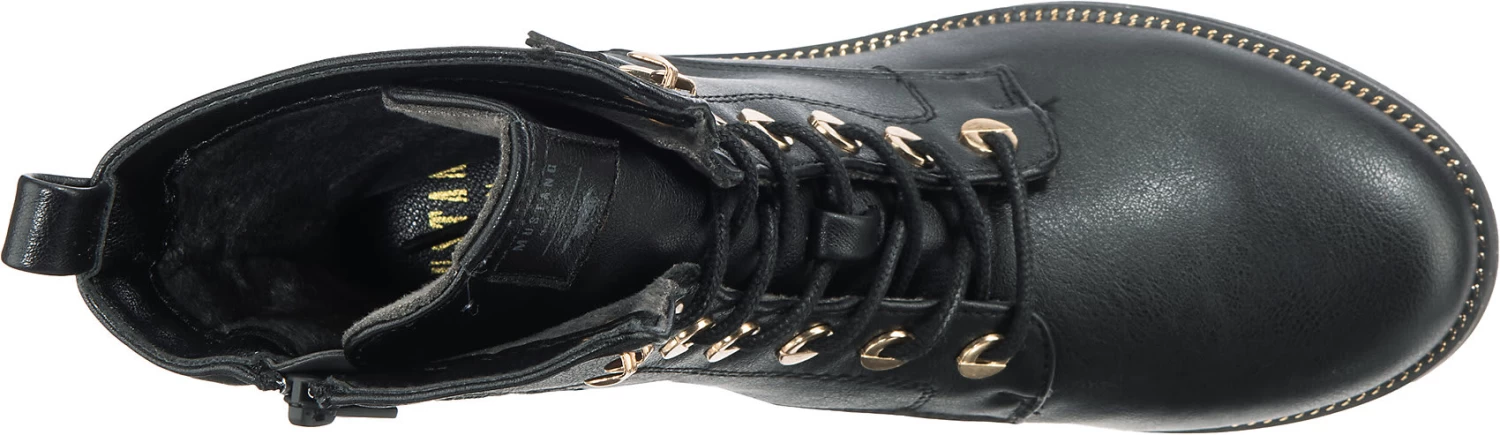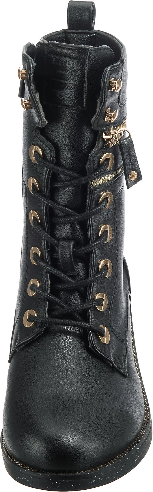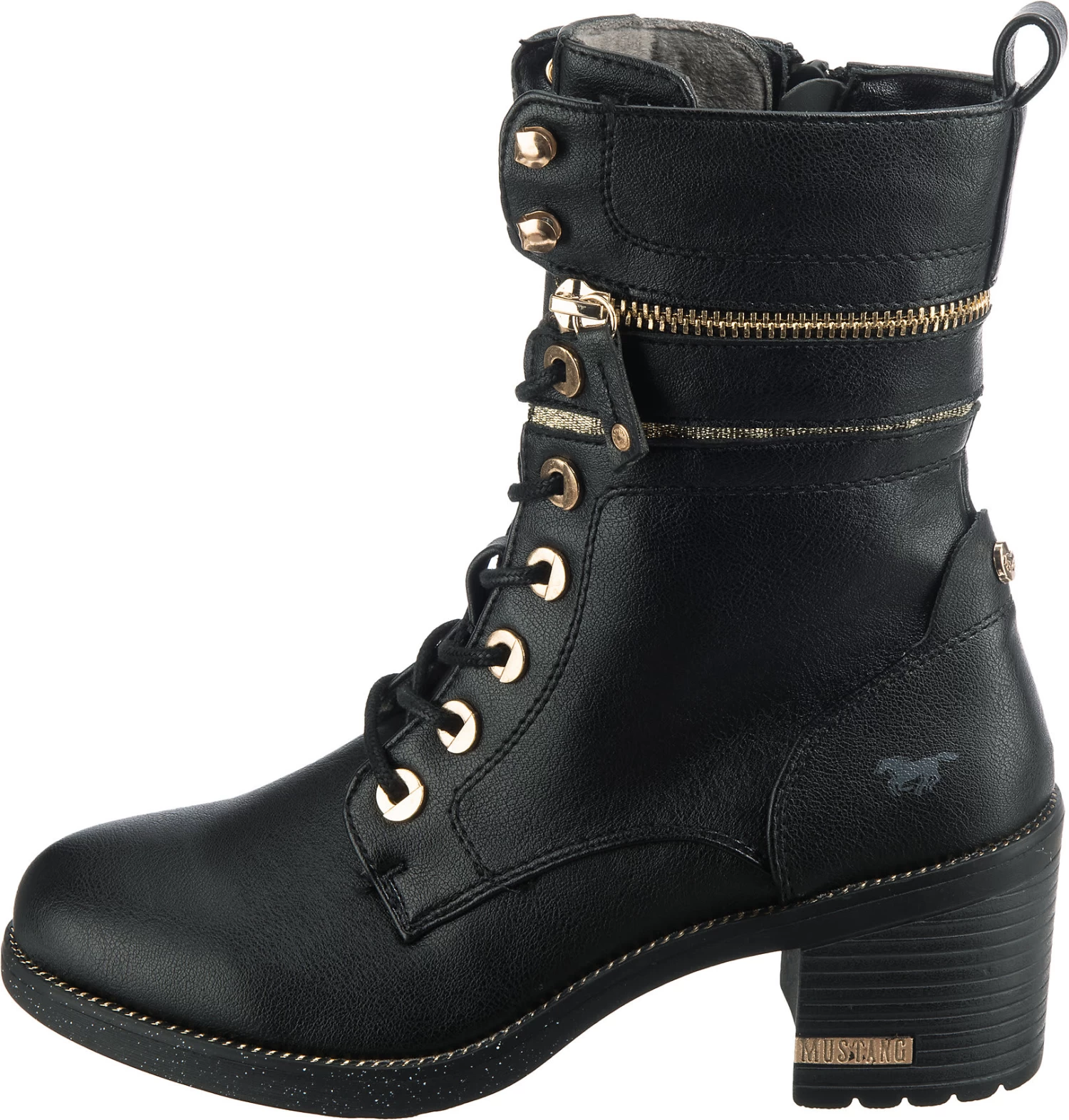 Unterstreichen deine Garderobe: Diese stilechten Schnürstiefeletten von der Marke MUSTANG. Zusätzlich zum Schnürverschluss ist das Modell mit einem Reißverschluss ausgestattet. Die Oberfläche dieses Paares ist aus Synthetik und besticht mit der modischen Aufmachung. Der mittelhohe Blockabsatz sorgt für ein angenehmes Tragegefühl und einen stilvollen Look.
