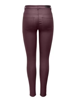 JACQUELINE DE YONG Skinny Jeans Leder Optik High Waist Stretch Coated Denim Pants In Weinrot