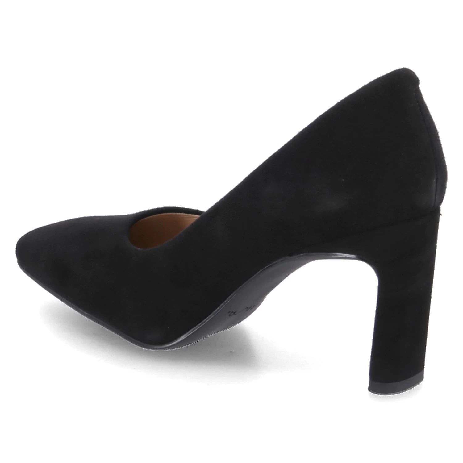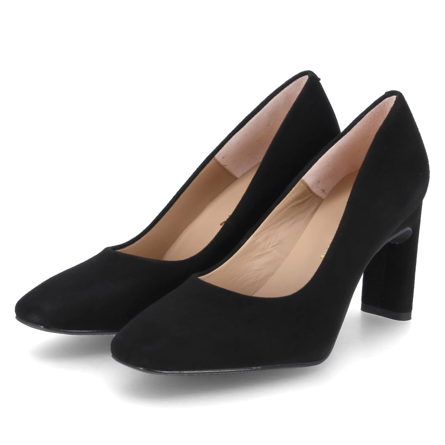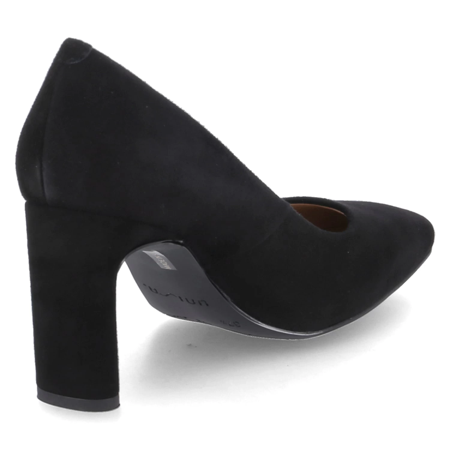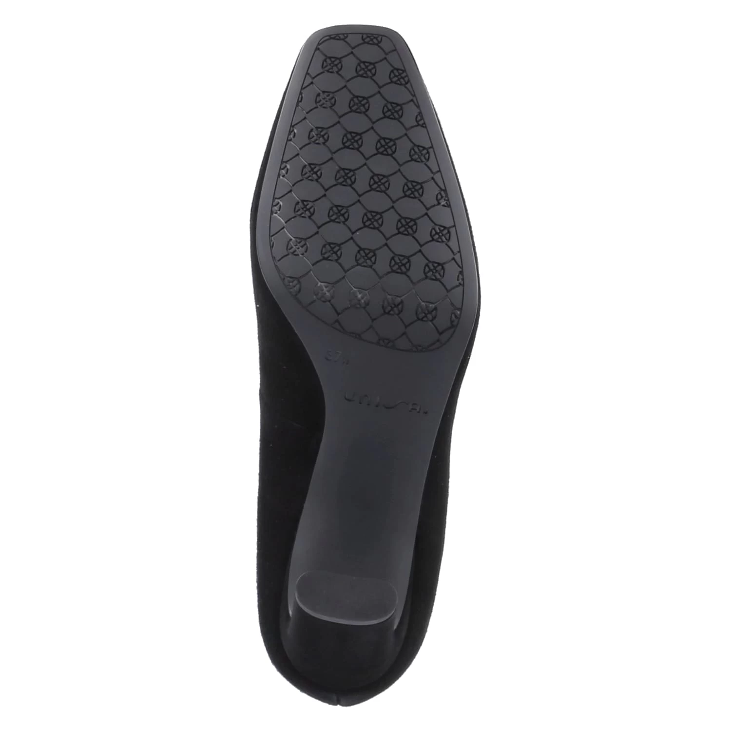 Unisa Damen Pumps WABA Schwarz Rauleder – samtige Oberfläche – Karee-Fußspitze – hoher, schmaler Blockabsatz – weiches Lederfußbett – Lederfutter – flexible, rutschhemmende Laufsohle