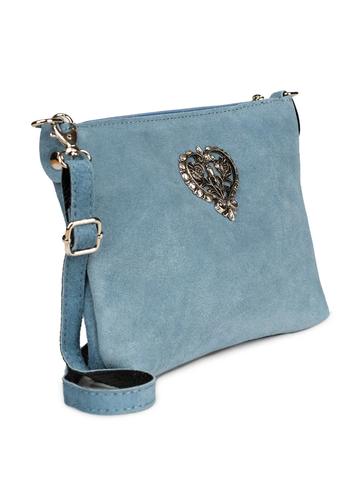 Gehört zum richtigen Trachten Outfit einfach dazu. Die Wildleder Trachtentasche in graublau. Viele Dirndl werden in neuen pastelligen Farben angeboten und die Frage ist welche Tasche trägt Frau dazu. Die Tasche muss groß genug sein um alles unterzubringen was eben so notwendig ist und sie muss schick aussehen und zum Dirndl passen. Die neue Tasche von Schuhmacher nimmt genau diesen Farbtrend auf und zeigt sich hier als wunderschöne Schultertasche in graublau. Die Größe von 22x17cm eignet sich kess über der Schulter getragen zu werden und sie eignet sich aus als Handtasche. Der Schulterriemen ist abnehmbar.•Wildleder, ca. 22 x 17 x 2 cm, Schulterriemen 1,45 m verstellbar und abnehmbar